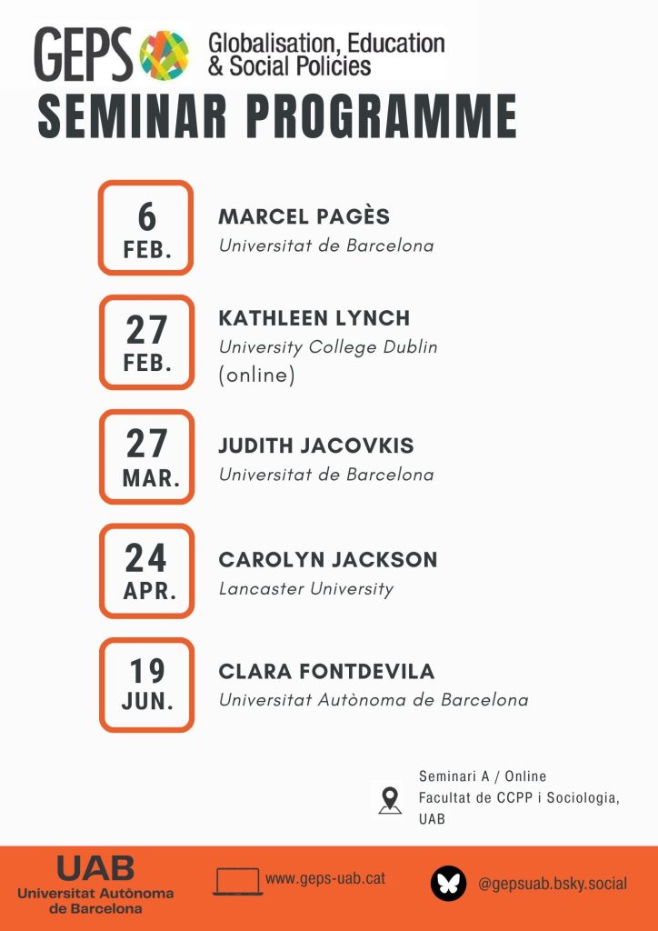 The GEPS Seminar Series for the 2025-2026 academic year has a monthly schedule, where permanent GEPS members and visiting researchers will present their work. Seminars are open to the university community upon registration. Find below the upcoming and past events.